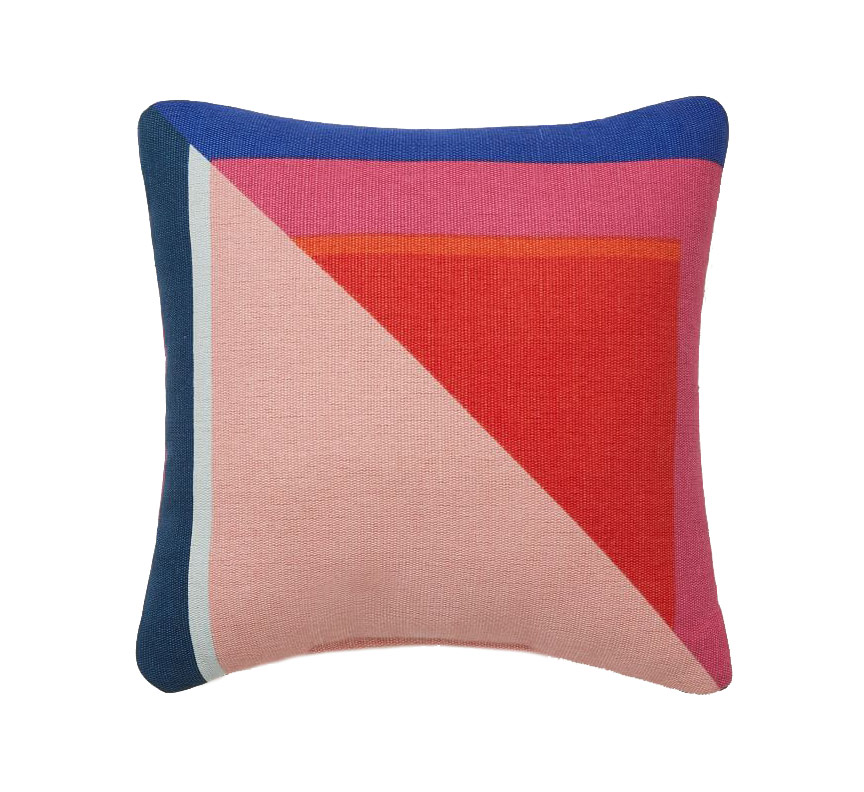 Split colorblock indoor/outdoor pillow in magenta, available at West Elm.