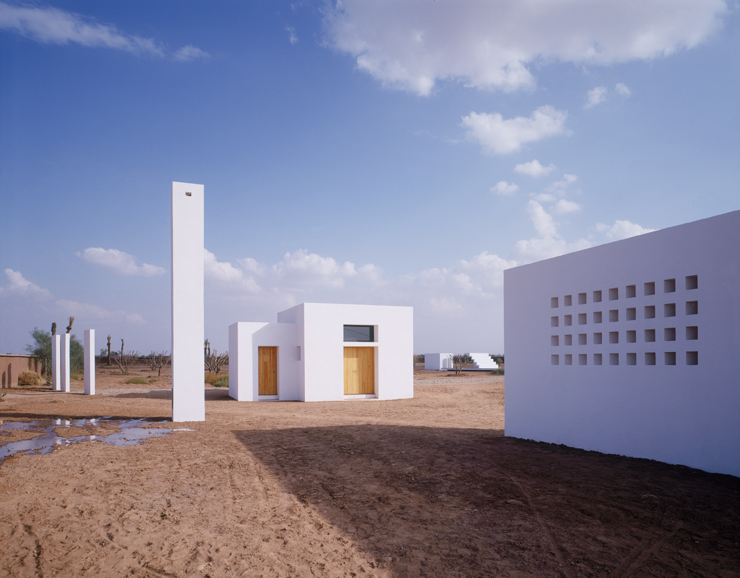 French architect Gilhem Eustache conceptualized and created this beautiful home in the village of Tassoultante in Marrakech, Morocco. The 1,800-square-foot home occupies five acres of land with over 500 trees planted on the property. With a breathtaking view to the South of the Atlas Mountains, the house spans the landscape. Guilhem focused on large heights, flowing, open spaces and played up shadow and light. Two parallel concrete sails create a noise and visual barrier to the west. A steep stairway stands between two walls, rising to a rooftop terrace further enhancing the views. For a tour of the entire home, visit youtube.com/watch?v=2JLvzpZywuU