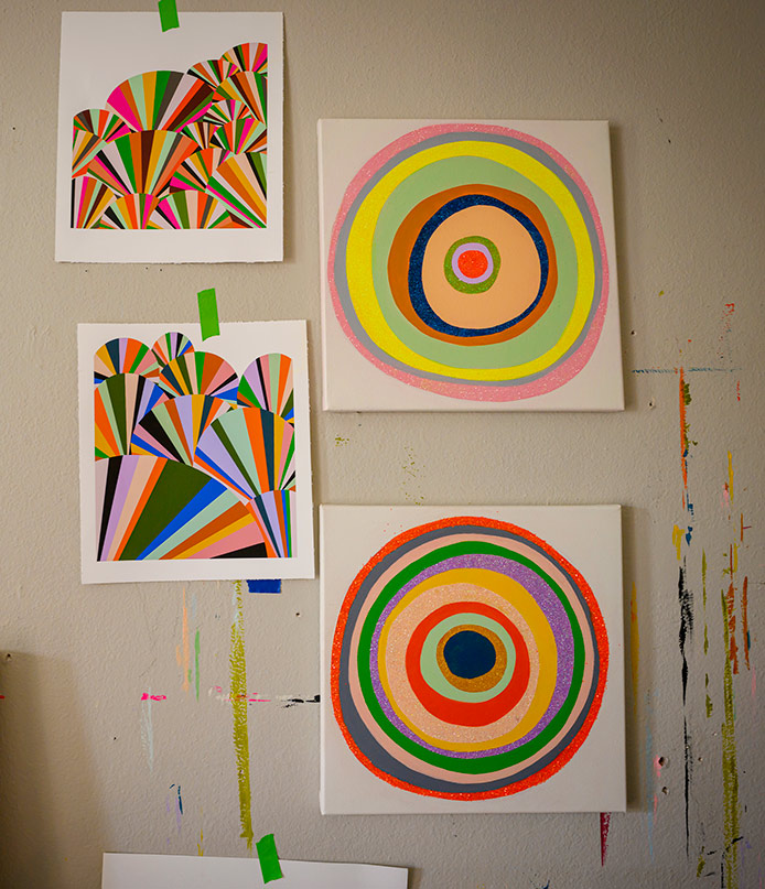 Eager to explore other mediums, Clarke has tried mixed media, collages and print, all the while adding in glitter wherever she can. “I’ve also done some live art events, where guests can watch me make my art,” she says. “My art isn’t for everyone—it’s strong, colorful, impactful—but there are people that appreciate a chaotic use of color. And if that’s you, then I’m your artist,” she laughs.