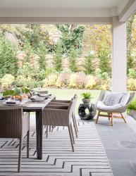3. By M.S. Vicas Interiors. This outdoor dining area provides seamless indoor/outdoor living thanks to accordion doors that connect this covered porch to the main living area. Retractable screens help keep out mosquitoes so this area can be enjoyed on sultry summer