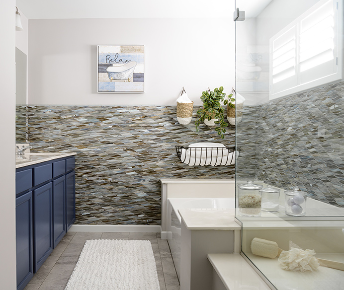The homeowner wanted a resort-style interior because when traveling before Covid, they always enjoyed staying at resorts. “We loved how 5-star resorts made us feel,” says the homeowner. “We thought it would be great if we could feel the resort experience every day without having to leave our home.”
