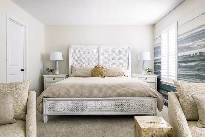 Although Moore had been asked to make homes feel like vacation getaways before, she’d never worked on anything quite like this. “Usually, a client might want a coastal theme—think seashells in glass jars and signs that read ‘This Way to the Beach.’” But Moore was up to the challenge of creating what the couple wanted, a resort with a high-end feel.