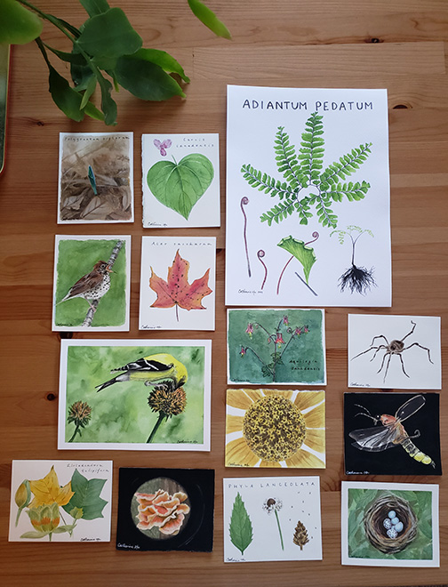 When audiences see her work, she hopes they will be inspired to look more closely at the life around them too. “My goal is to show native flora and fauna in a beautiful light and to encourage folks to consider growing native plants in their gardens.” At a time when more focus is paid to the health of the planet, Hu urges people to do the right thing and plant native plants. “They are so important for our native insects, pollinators, birds, and more,” she says. After all, without even the smallest member, how could there be the complete beauty of Midwest nature? Readers can find Hu’s art business online at Sedges Have Edges Art or purchase art through her Etsy shop.