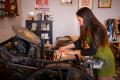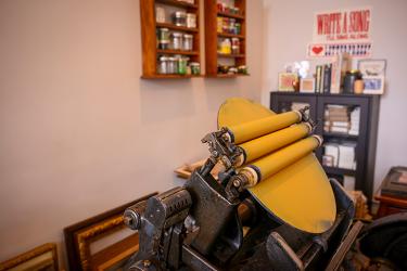 Both daughter and father love the art and history behind their work, but Madeleine especially loves the tactile nature of the labor. “I had studied and was working in graphic design,” she says, “but decided to make a pivot to something more tactile. Printmaking really fit the bill.” The St. Louis storefront, where they sell their art as well as other stationery items like fountain pens, vintage inkwells and other goodies, is also an open studio. “So, people may be able to see me running our 100-year-old letterpress on certain days, painting prints or carving.”