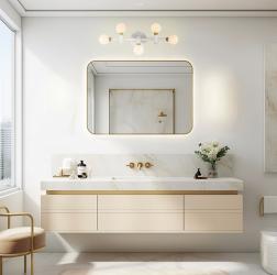 Bathrooms don't have to be boring. Step out of your comfort zone with a unique vanity light, or accent a busy wallpaper with a simple yet showstopping wall sconce.