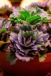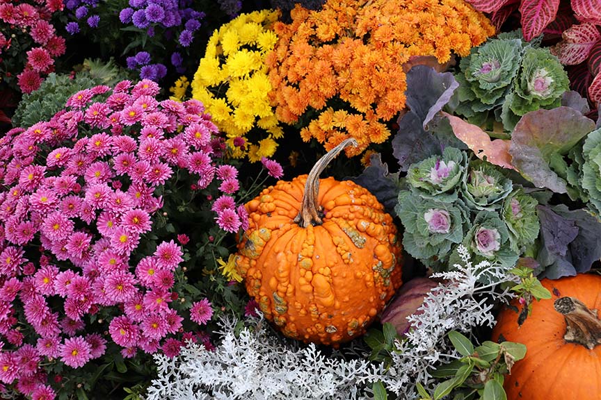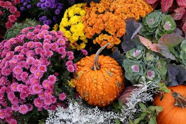 If texture is what you’re looking for, combining different plant textures is an eye-catching addition that adds texture. Plants like purple kale, mexican orange blossom and mums add texture and color to typical green arrangements. It’s important to keep in mind which accent plants will be able to take a slight frost once the weather cools down.