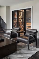 The designers restored and built upon some of the home’s beautiful original features, including the parquet floors in the entryway that just needed some TLC. They also painted the existing office molding a warm caviar and added library lights and wallpaper accents to give the space an intimate feel. Significant improvements to the lower level expanded the finished basement area and created additional rooms. These changes including relocating the bar to create a billiards room and converting a prior closet into a wine cellar. "We replaced a series of individual doors for the lower-level family room with a 16-foot-wide sliding door unit, generating a stronger indoor-outdoor connection," adds Cyr. The rooms flow gracefully to accommodate the ease of everyday living as well as large-scale entertaining, while respecting the home's traditional roots.
