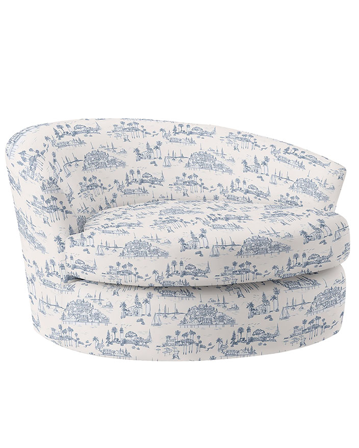 Magnolia swivel chair in seahaven french blue, available at Serena & Lily.
