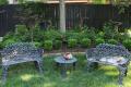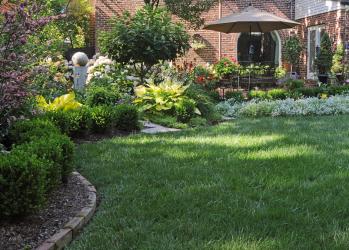In the past eight years, Carol has taken the small, 50-by-70-foot space and filled it with 12 small specimen trees, flowering vines, lush shrubs, perennials and annuals, all set out in curvaceous, boxwood-edged beds that line three sides of the landscape.