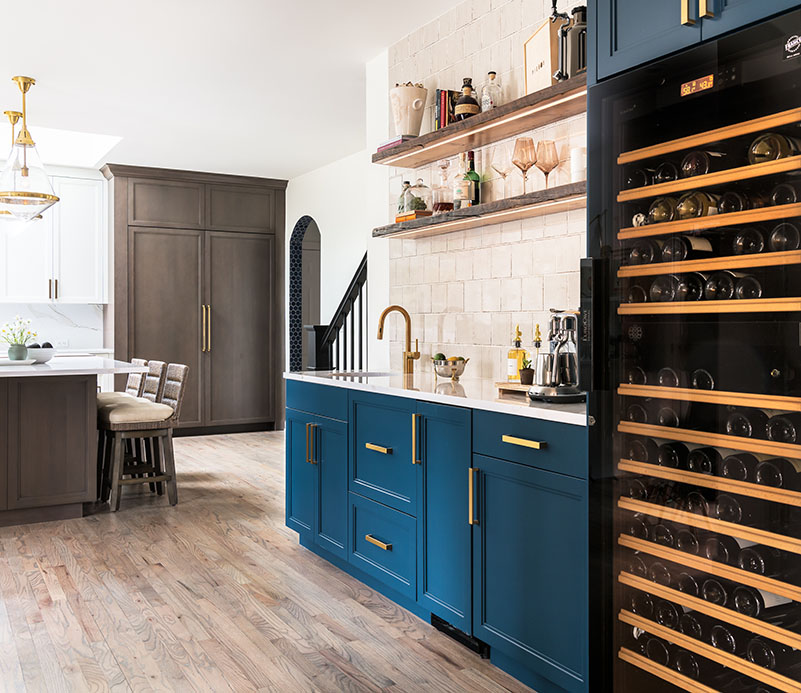 Kate estimates 100-plus wine bottles fit into their new storage space. “We spend so much time at our kitchen island now. It’s large enough that Adam can cook, I can be coloring with the kids, and we still have plenty of room to move around without bumping into each other. It’s definitely my favorite spot in the whole house, because with this renovation, the kitchen really became the heart of our home,” says Kate.