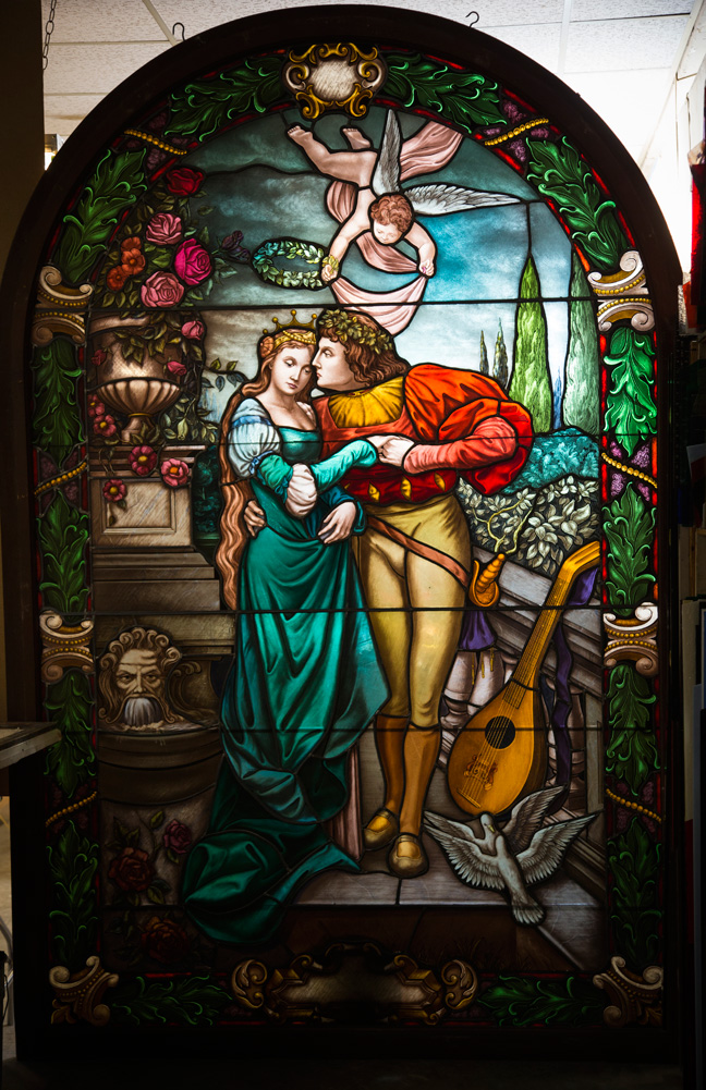 Jerry’s favorite part of the process is the painting work, especially the figures often seen in the designs of church windows. “It’s a little more specialized,” Jerry says. “We are one of the few companies in the city that can offer that type of work for a full-scale church.”