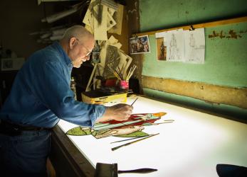 Residential popularity fluctuates, but church orders keep the business busy. When they do receive a home order, Jerry says it is often for the entryway, bathrooms, skylights, kitchen windows, wine cellars and entertainment rooms. Stained glass windows can add color and a unique quality to the house. “Stained glass windows are like a beautiful painting,” Gary says. “And if the windows are constructed properly they can last indefinitely.”
