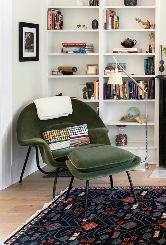 Womb Chair (1948) Designed by Eero Saarinen in 1948, this chair was requested by furniture designer Florence Knoll who was looking for a cozy chair to curl up in. Saarinen wanted to create a chair that was comfortable because of the shape of the shell, not the depth of its cushioning. A boat builder in New Jersey assisted with the fiberglass and resin used to create the fiber-reinforced plastic of the chair with additional elbow room for added comfort.