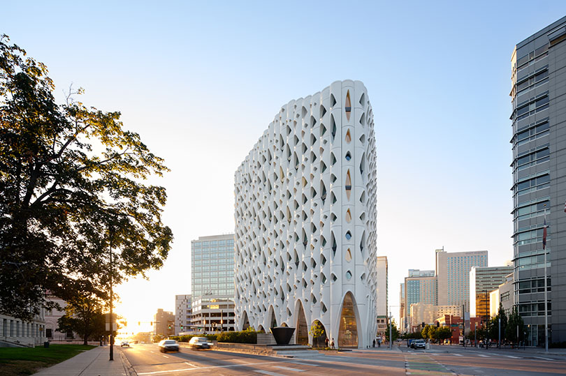 Located in downtown Denver, Populus, a 135,000-square-foot hotel with 265 guest rooms, combines creativity and conservation. “Denver strikes a unique balance between being a vibrant city and a gateway to some of the country’s most awe-inspiring natural landscapes,” says Jeanne Gang, founding partner of Studio Gang. “Our goal was to draw from this distinct urban character and rich ecology to create a building that would help define the skyline of this thriving city.”