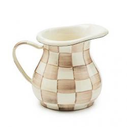 Mackenzie-Childs creamer in mocha check, available at Three French Hens.