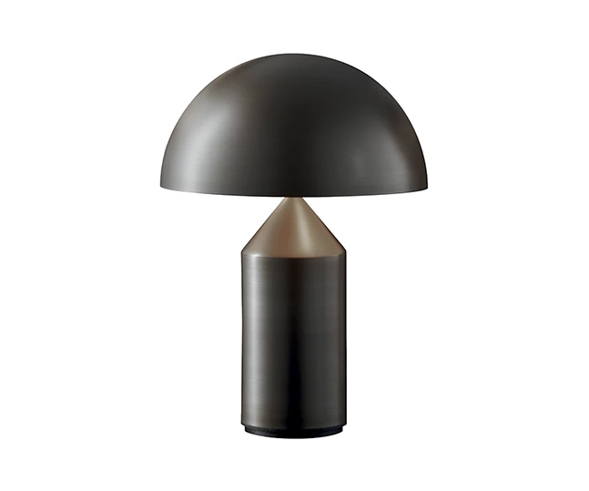 Designed by Vico Magistretti for the Italian design company Oluce in 1977, the Atollo Table Lamp is considered unique for its progressive design and use of materials. The geometrical dome at the top and the use of metal in the construction instead of wood add a touch of Magistretti’s design aesthetic to an everyday object. The cylindrical base of the lamp ends in a cone, softening the light and creating the illusion of the opal glass dome floating above the base.
