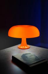 Known for its mushroom shape and bright color, the Nesso Table Lamp was designed by Giancarlo Mattioli in 1967. Four concealed bulbs emanate a soft glow from the lamp’s ABS plastic molded top and base. The Nesso Table Lamp would go on to make appearances in iconic museums, including the Metropolitan Museum of Art in New York, and it is still being recreated by numerous design companies today.