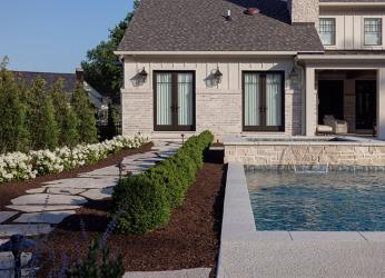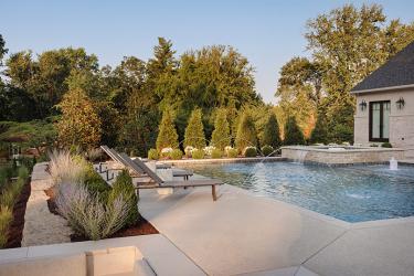 Those criteria also applied to the exterior of the home and the grounds that comprise their outdoor living space. Drew Bradshaw, designer at Pool Specialists, and Tony Frisella, landscape designer and owner of Frisella Nursery, understood that directive perfectly.