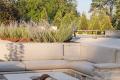 Tasteful architectural accents, a neutral color palette and artful planting add depth to this family-friendly outdoor space.