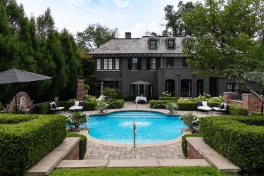 The previous homeowners originally installed the quatrefoil-shaped pool. Four connecting foils elevate the symmetrical design by creating a shape similar to a four-leaf clover or four-petaled flower. Four inward-facing fountains and two entry and exit points complete the layout. “We learned it (the pool) had been designed and built by SunTan pools, whose craftsmanship brought a distinctive elegance to the space,” says Sarah. Not only providing design expertise, SunTan Pools also maintains the pool to ensure it is performing and looking its best.