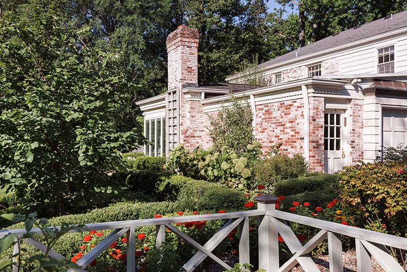 Natasha always makes sure that fragrant shrubs such as summersweet and Korean spice viburnum, which blooms in the spring, are planted at the back of the garden as well as near the house to draw visitors to the entire space. A bench in the back garden is her husband’s favorite spot to sit with his evening gin and tonic, she notes.