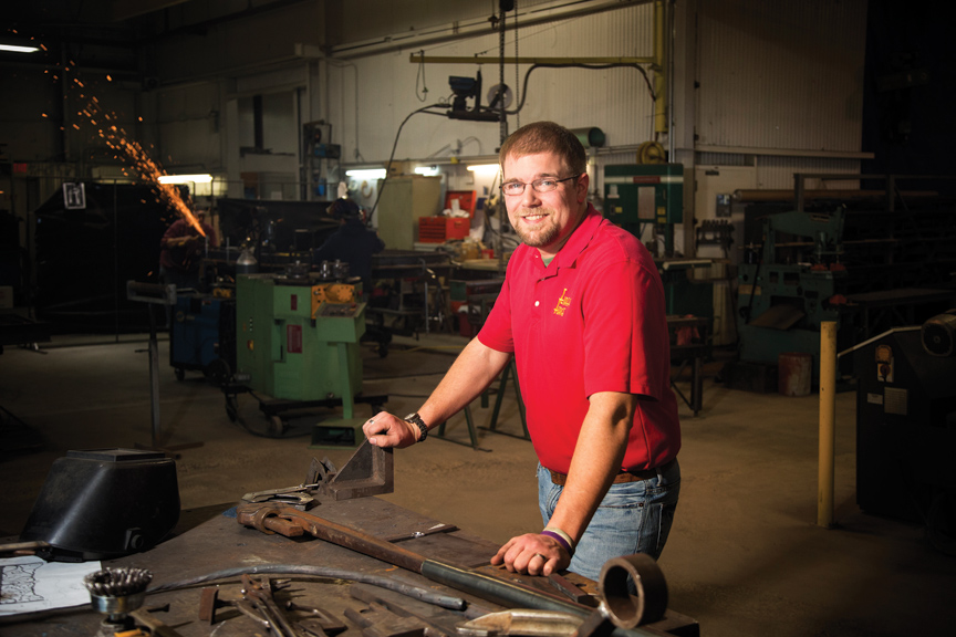 “Everything here is either hot, sharp or dirty,” jokes Mike Kinnikin, describing his 12,000-square-foot metalwork shop, Eureka Forge. Mike, along with 11 other guys, spend their days at the shop creating one-of-a-kind artworks out of steel, bronze, copper, brass, aluminum and other metals. “My dad started this business, and I learned from him. I grew up with it,” Mike says.