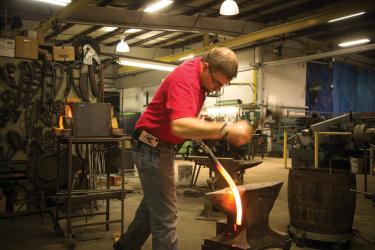 Mike enjoys his work at Eureka Forge. “I like to work with metals. I like the feel of it, the strength of it, and the ability to heat it up and shape it relatively easily,” he says. “I like to blend the mechanical with the ornamental, such as a gate that works, but is covered with ivy.” He enjoys taking a customer's idea, and with the help of everyone at Eureka Forge, bringing it to life. Perhaps that's why their tag line is “From your imagination, we forge reality.”