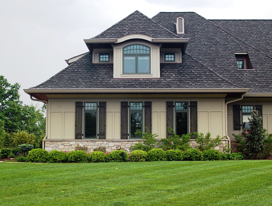 Contributing to the strong statement are the home’s roofline, windows, exquisite woodworking and stonework. The majority of the home’s second floor is built into the roof structure. Recessed dormers provide natural light into the workstations of the loft space. Above the garage, custom designed windows along the north and south sides of the house allow natural light to stream into the two private bedroom suites.