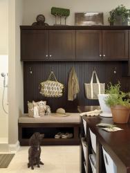 With cubbies for each family member and a center island work station with additional cubbies for storing hobbies, gifts and wrapping paper, the family is able to stay organized. The island also has built-in docking stations for electronics. Built-in benches make removing or changing shoes easy.