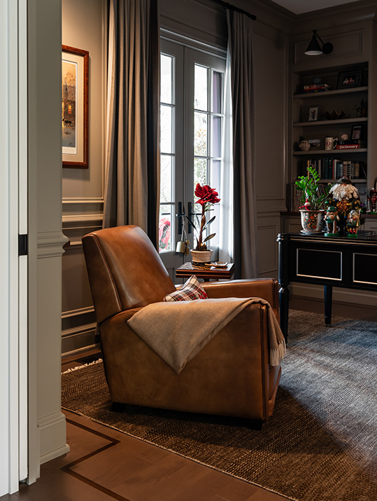 In this instance, the designers brought in subtle hints of Asian influence, derived from the wife’s early childhood in Japan when her father served in the Air Force. Detailed millwork and hardwood flooring were also important design elements. “We worked with Boardwalk Hardwood and it took us many iterations to get the exact stain we wanted for the maple floors,” says Maria. “The stain is very rich and warm, which felt traditional, but also pulls more modern.”