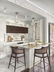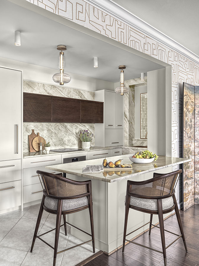 Perched on the 10th floor of a high-rise in Clayton, just walking distance from some of St. Louis’s finest dining spots, this recently renovated apartment lives at the intersections of high design and culinary culture. Optimizing the layout and implementing refined design were at the forefront of this kitchen renovation where the design team sought to open up the previously dark and utilitarian galley kitchen into a space for state-of-the-art cooking and exceptional entertaining.