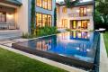 Negative/infinity edge pools create a dramatic effect in your backyard. A negative or infinity edge pool produces the visual effect that the water is extending to the horizon. This type of pool is ideal for a yard with a long, expansive view. “If the grade of the yard falls away from the house, this creates an opportunity for a negative edge pool with a lower catch basin,” says Bret Wood, director of design at West Port Pools.