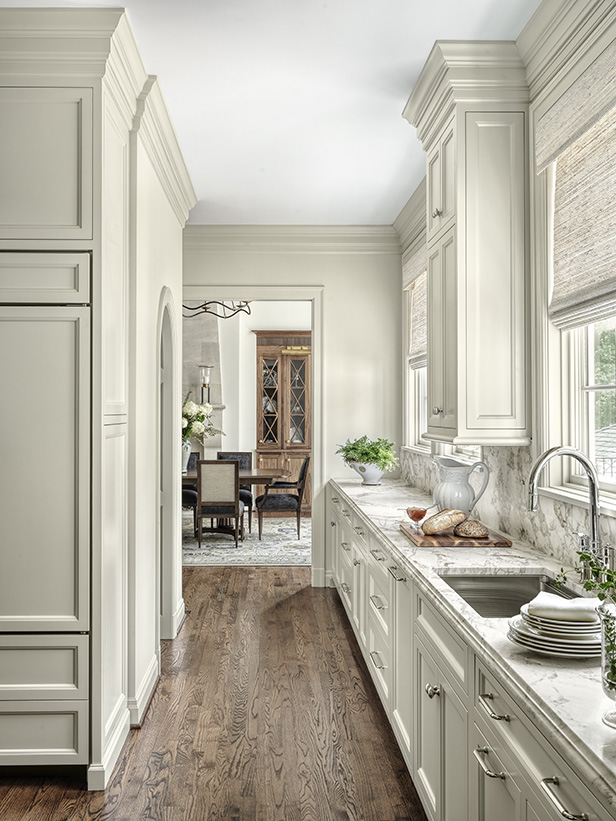 For the homeowners who love to entertain their large family and many friends, having a home that could refresh the layout for modern life while keeping in tune with its classic tradition was essential. The project was guided by a primary objective: to reimagine the layout as tailored, well-appointed, light-filled, and equipped for hosting. The previously large kitchen was transformed into two spaces: a smaller, more functional kitchen and a handsome barrel-vaulted butler’s pantry, to better accommodate the client’s use of space. Rich in personality and poise, this kitchen embodies refined classics and livable comfort that doubles as the perfect backdrop to family memories.
