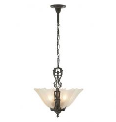 Slipper or Slip shades were common among chandeliers and pendants and featured a curved milk glass shade that produced soft light. Vintage Art Deco chandelier slipper shade, available at Rejuvination.