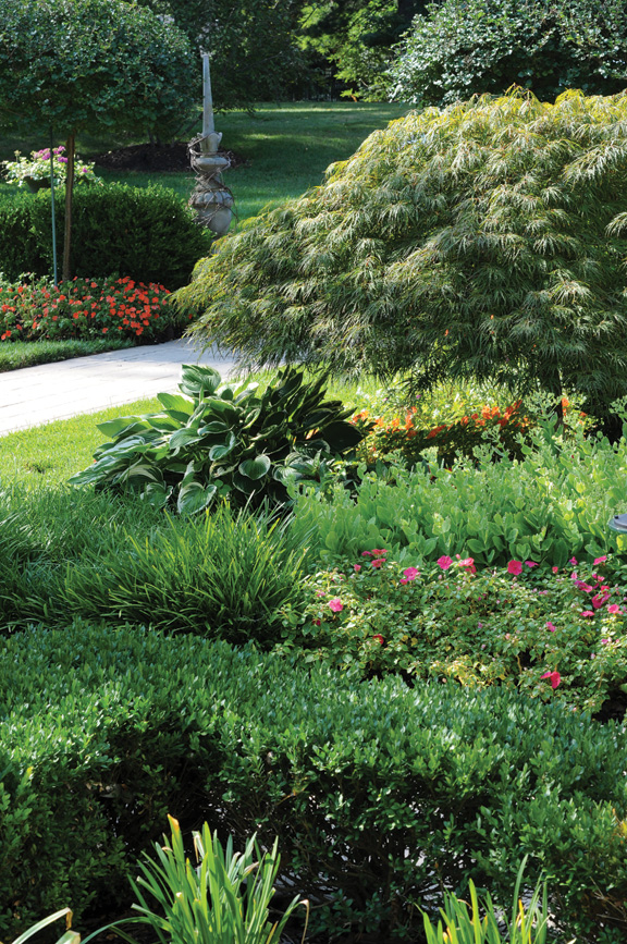 While the backbone of the garden is in the flowering trees, shrubs and perennials, one of the most creative aspects of the landscape, both women agree, is the ability to use annuals to create a different color scheme in a few beds and around the patio each year. “I’ll say let’s do all white this year or let’s do bluish purples,” Diane explains. “One year we filled an entire patio bed with yellow marigolds. It was just beautiful.”
