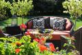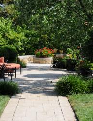 Beyond the patio, Diane likes to garden with masses of flowers in a single color for a bold statement. ‘Knock Out’ roses and daylilies fill entire large beds. At the back of the property masses of hydrangeas blooming at slightly different times form a cutting garden so she is never without flowers for a dining table or an end table. Diane’s plan is for something to be blooming from early spring until December. Fragrance is also an important garden component. In early spring a line of dwarf ‘Lollipop’ lilacs frame the entrance to the patio from the yard and scent the air. One month later, a Japanese tree lilac, placed where the sunroom and the patio meet, perfumes both the house and the garden.