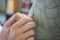 Mohler uses a chisel and hammer, the same tools used by Carpeaux and other sculptors thousands of years ago. However, today he adds modern equipment to his toolbox, such as a pneumatic hammer, which saves wear and tear on the body, and an electric grinder with diamond abrasives, for faster removal of waste.