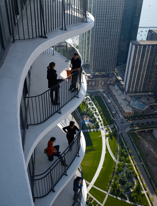 Standing 82 stories into the Chicago skyline, the Aqua Tower is a unique, mixed-use high-rise. Designed by Studio Gang Architects, Aqua Tower’s outdoor terraces differ in shape from floor to floor. While each varies in size, the spectacular view provides a strong connection to the outdoors and the city. Inspired by Lake Michigan and the Chicago River, the undulating terraces appear as if water is running down the building’s face. The curves don’t just give the space a visual appeal; they also help shade the glass and protect the building from the force of wind.