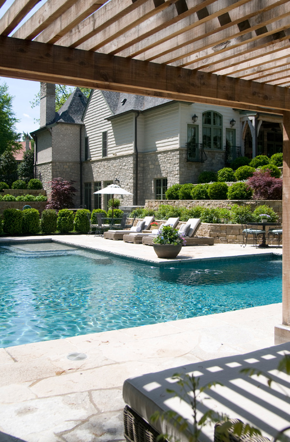 “We’re still working out the best places to entertain when we have groups over,” Jen says. “The adults seem to favor the upper terrace while our ninth grade son’s friends head for the pool.”