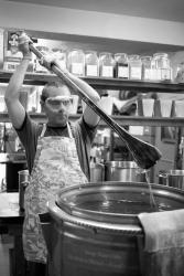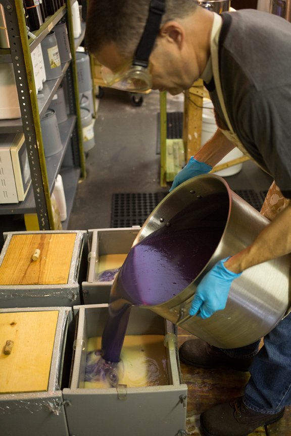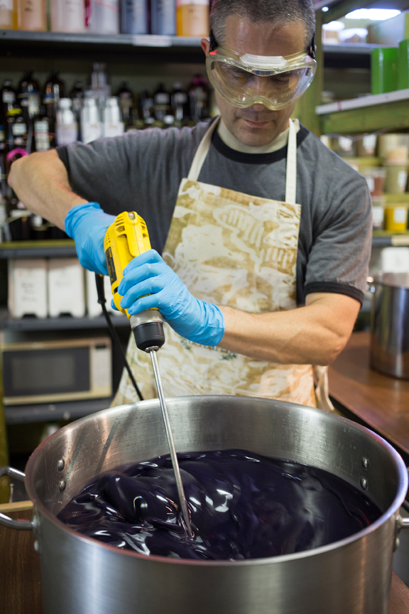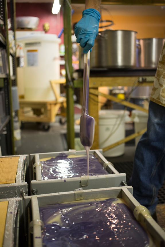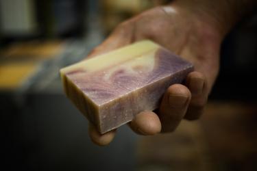 For Ken, the most important part of the business is using natural ingredients. “We're all about the plants. We use the real thing, and your body knows it. Artificial fragrance oils are the number one cause of skin irritation,” he notes. “So many people have eczema, or are allergic to synthetic chemicals.” He researches the properties of each plant before using it as an ingredient, to make sure it is beneficial to the skin, and comes up with some creative blends. Tomato Surprise soap includes dried tomato because the lycopene in tomato is a powerful antioxidant. Spearmint Orange is a natural tension relaxer due to the menthol contained in the spearmint; an added benefit is that it helps open the sinuses. Pink Grapefruit includes the skin-toning benefits of real grapefruit. Their best-selling soap, Lavender Oatmeal, is prized not only for its wonderful scent, but also for its antibacterial and exfoliating properties. Their website, www.herbariasoap.com, lists the ingredients in each bar so customers know exactly what they're getting.