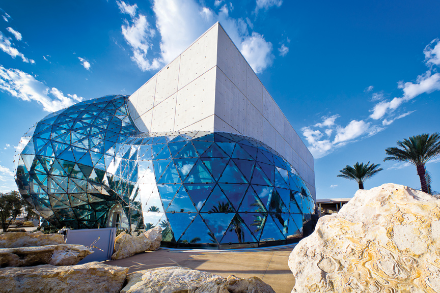 Home to the world’s most comprehensive collection of Salvador Dali’s art outside of Spain, the three-story Dali Museum sits alongside a beautiful bay in St. Petersburg’s downtown waterfront. To create an iconic building symbolic of the Spanish painter’s work, the design team at HOK created a building with 18-inch-thick concrete walls with a free-form glass geodesic structure featuring 1,062 undulating faceted glass panes that brings light and views of the bay into the space. The American Institute of Architects placed the building on its distinguished “Florida Architecture of the Last 100 Years” list.