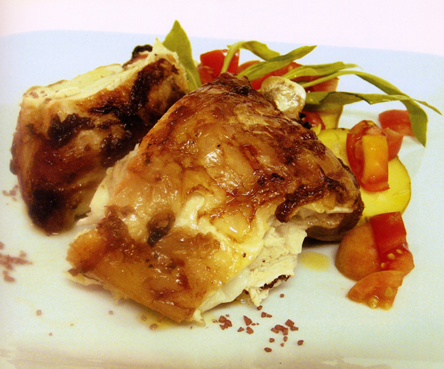 Another Salento delicacy is what they call milk lamb (baby lamb raised only on mother’s milk) that is very tender. The leg of this young lamb is marinated for 12 hours in dry white wine, together with herbs like laurel and myrtle (an ancient spice found in abundance in Mediterranean areas like the Salento peninsula – rosemary can be substituted if there is no myrtle available). It is then wrapped in caul fat, another ancient ingredient that is actually a thin membrane of fat from pigs or cows, which melts into the pink meat during 40 minutes of baking. Very thinly sliced strips of easier-to-find lardo will also work.