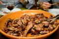Spicy dishes also complement Rioja-style tempranillo. Another traditional recipe that is ideal for the Vina Eguia Crianza 2008 (a venerable old Rioja winery that the Murua family took over a few years ago) is potatoes Rioja style with chorizo. Garlic, onions and chorizo sausage are sautéed with potatoes and given a final “kick” with Spanish paprika. The dish contains all the ingredients for an amazing cold-weather side dish at dinner, or even a stomach-filling lunch, paired with a green salad, scallion ribbons, cherry tomatoes, large, pitted Spanish green olives and shavings of Spain’s famous Manchego cheese (even better if the cheese is aged seven months or more).
