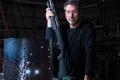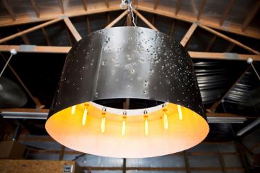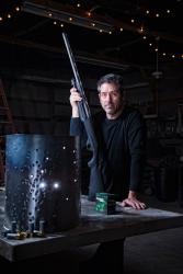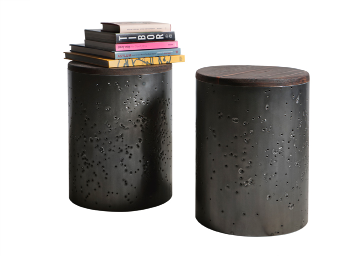 The feeders are just some of the things he makes. He owns John Beck Paper and Steel in Edwardsville, Ill., where he constructs custom steel furniture, doors and lighting. To make the pieces, John and his team work with welding machines and saws, but most of their work is done with their hands. They clean, cut, weld, polish, sand and sometimes paint the steel. Or they will take a shotgun to it. Seriously! The shotgun pieces are his favorites, and the holes and indentations add character.