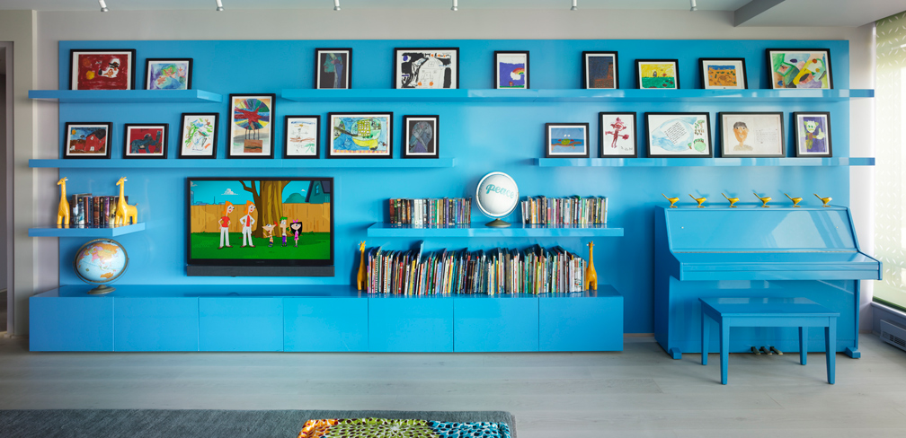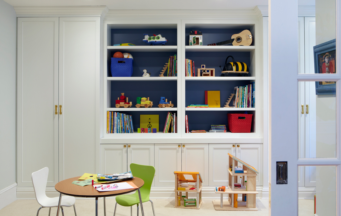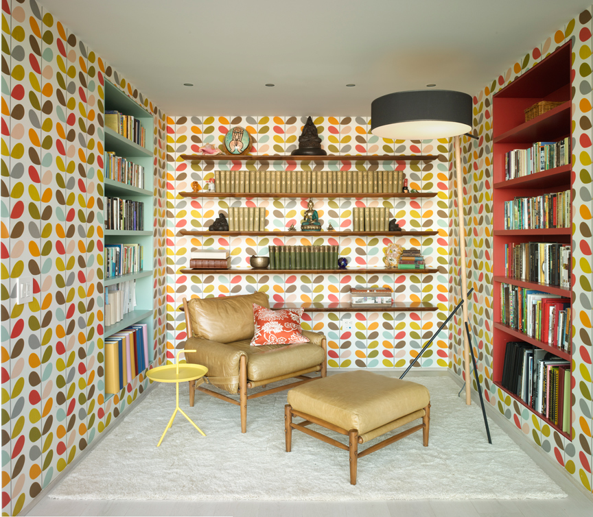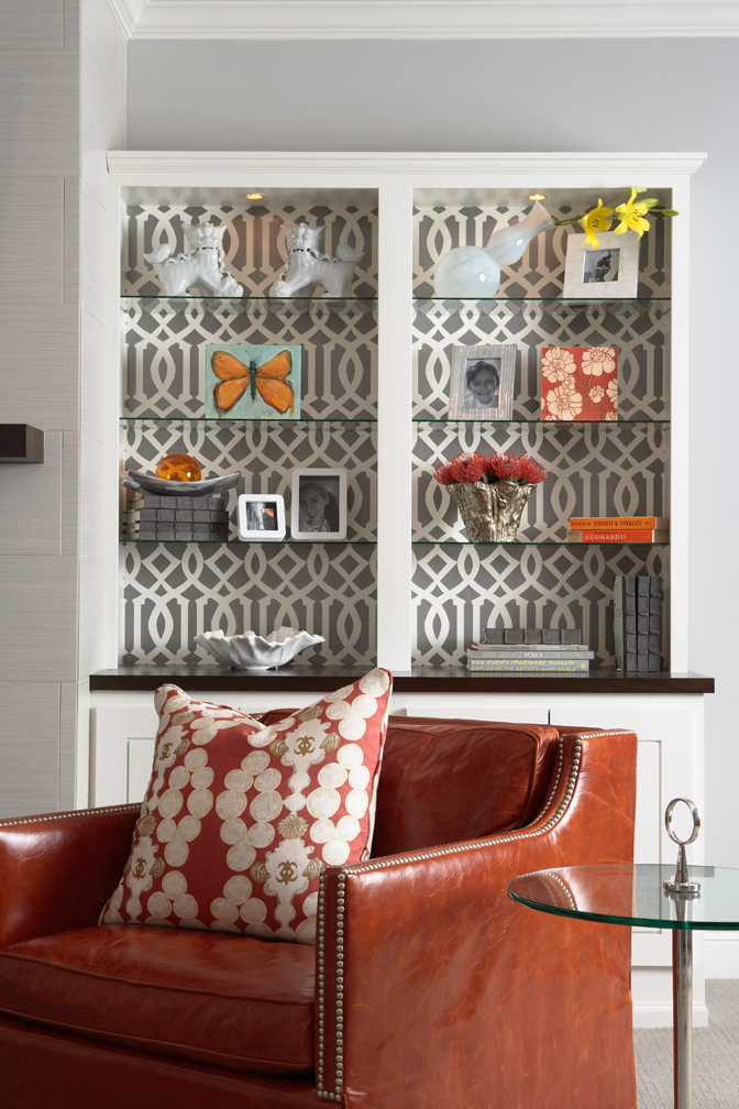 two: Wallpapered shelves, by Martha O’Hara Interiors.