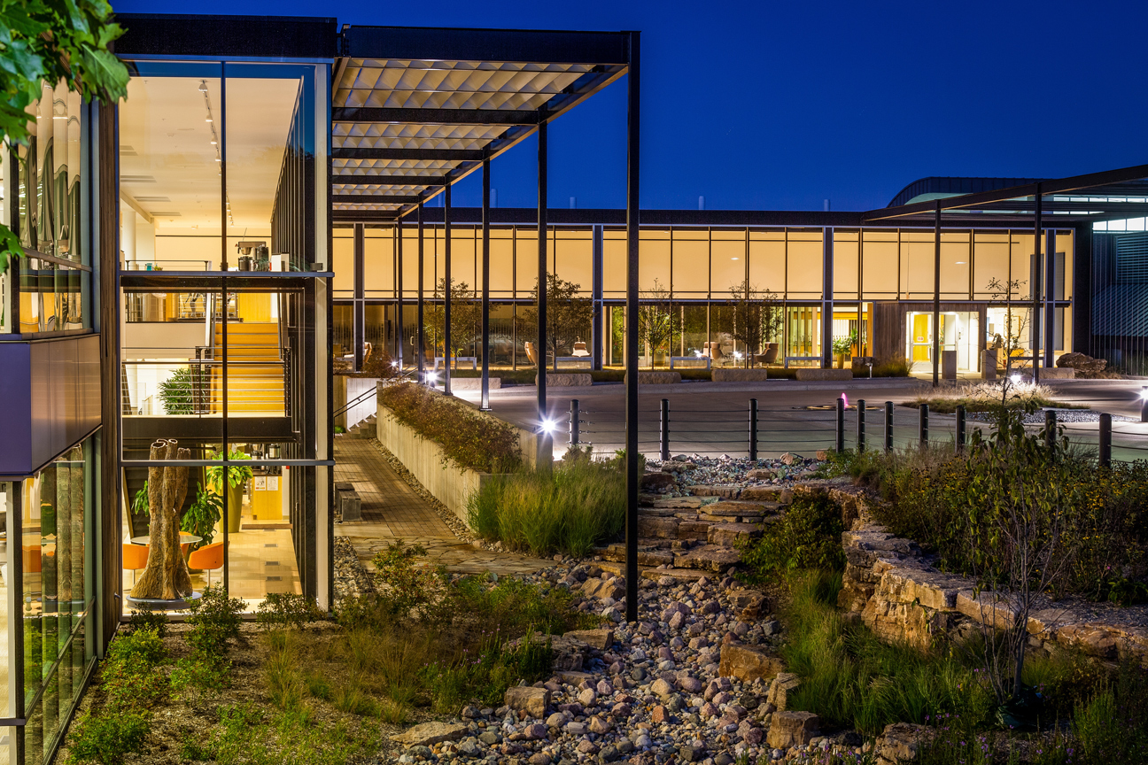 In May 2010, Novus International became one of 150 pilot projects across the globe chosen by the Sustainable Sites Initiative (SITES) to test a new four-star rating system for sustainable landscape. The site design and construction were led by SWT Design, a landscape architecture, planning and urban design firm. In January 2012, the nine-acre site was awarded three-star certification by SITES, making it the world’s highest-rated landscape project. The campus features diverse habitats, native plantings, innovative stormwater management and an improved quality of life for employees. An emphasis was made on using regional materials, and sustainable design best practices such as hydrology, wildlife habitat enhancement and monitoring, as well as improved soils and vegetation, were used.