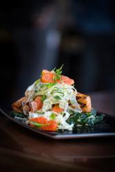 He was happily cooking for Bill Cardwell at BC’s Kitchen when a chance encounter with an old friend led to a job offer at Prasino, which was still under construction. “I wasn’t looking for a job,” he says, but he couldn’t pass up the chance to craft a menu from the ground up.