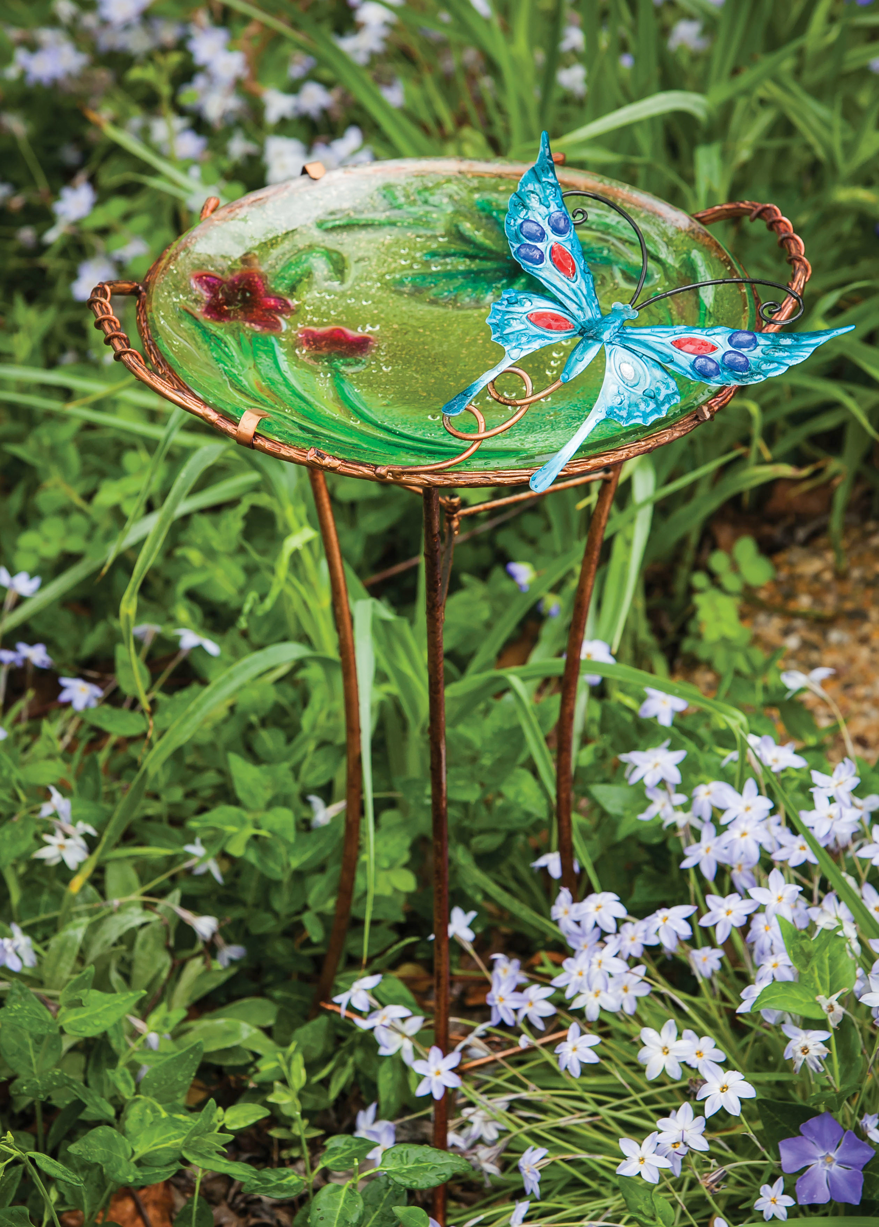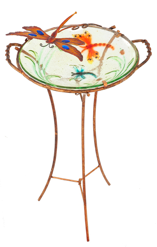 two: Daring dragonfly birdbath with stand, available at Terra.