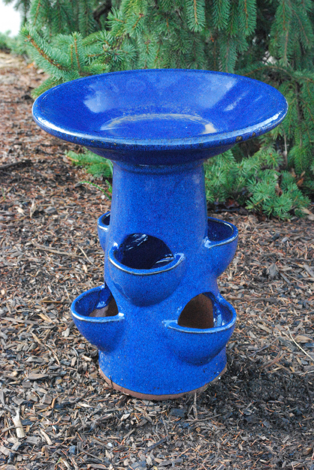 three: Berry birdbath in falling blue, available at Frisella Nursery.