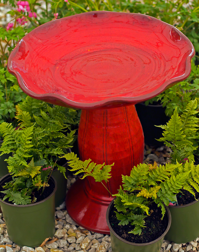 seven: Red wave birdbath, available at Sugar Creek Gardens.